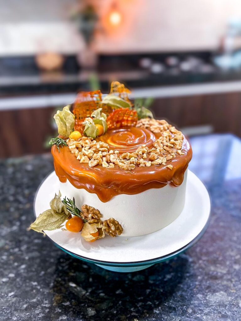 Recheio: de nozes e caramelo, trazendo um toque sofisticado de sabor.